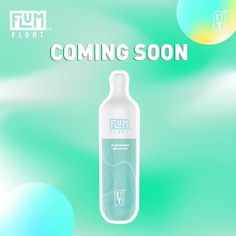 • Flum Float e-cigarettes in various fruit flavors. White background, each with a color-coordinated design.